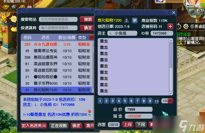 - 店铺名称:突出核心优势,比如“109师门药全3W”“猎术20龙凤宠秒发”,让玩家一眼看懂。后续改名需10万梦幻币,建议一次想好。