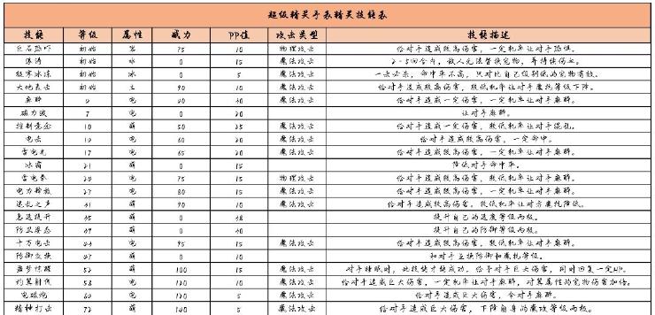 霹雳虎技能表:
